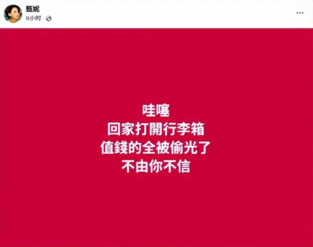 甄妮這回損失挺大,機票錢加上被偷的東西都打了水漂,現在看新聞說使館只能幫忙找證件,東西基本找不回來了,這事也只能算了吧。