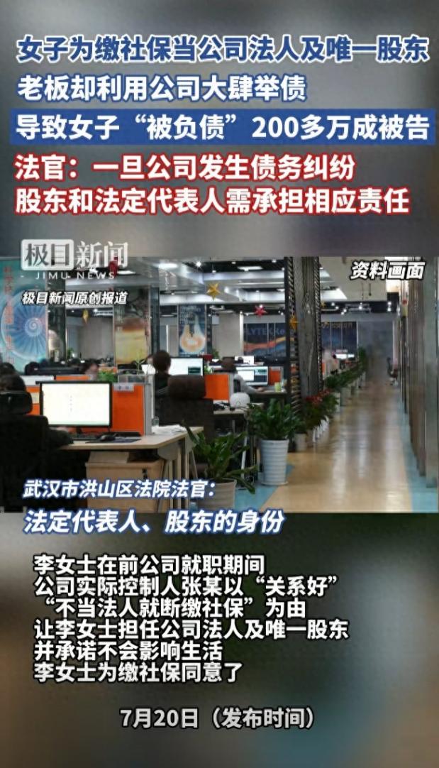 北京的李女士,入職公司之后,老板想要讓她“當(dāng)法人”,讓她掛名擔(dān)任公司的法定代表人和唯一股東。