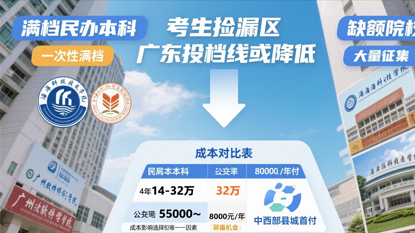 綜合這些情況,不禁令人心生疑惑。北京和吉林在高考錄取方面較為特殊,本科錄取率向來較高,高考人數也較少,看不上民辦本科似乎還能理解。然而,廣東的情況卻截然不同。從全國錄取數據來看,廣東的本科錄取率不算高,高考人數也不算少,為何民辦本科仍有如此多的差額呢?但現實并非所有民辦本科都在遇冷。從廣東省物理類投檔數據中能夠看到,民辦本科中的頭部高校珠海科技學院、剛過本科線就能上的廣州軟件學院和廣州科技職業技術大學等高校都實現了一次性滿檔錄取,考生對它們的認可度頗高 。這表明,高額學費雖會影響大家對民辦本科的選擇,但并非唯一決定因素。民辦本科若想獲得學生認可,還需從自身多做努力,否則可能持續面臨如今這種招生困境 。
