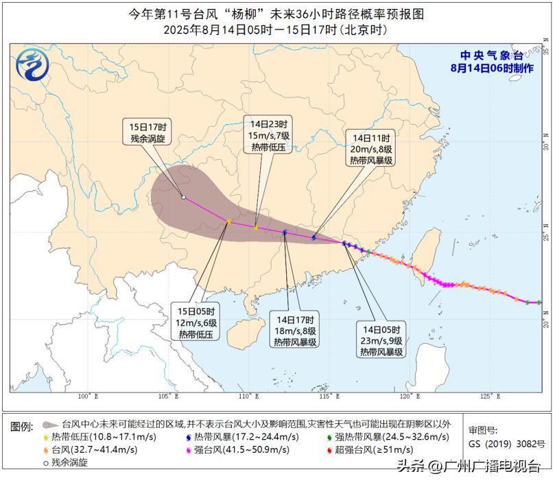 今年第11號臺風“楊柳”的中心已于今天(8月14日)00時30分前后在福建省漳浦縣沿海登陸,登陸時中心附近最大風力有11級(30米/秒,強熱帶風暴級),中心最低氣壓為990百帕。今天5時其中心位于廣東省梅州市境內,就是北緯24.4度、東經115.9度,最大風力有9級(23米/秒,熱帶風暴級),中心最低氣壓為995百帕。#臺風楊柳已進入廣東