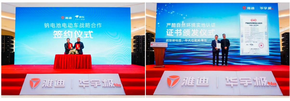 發(fā)布會上,雅迪還與京東達(dá)成鈉電池電動車戰(zhàn)略合作,攜手推進(jìn)鈉電新產(chǎn)品新技術(shù)的推廣。雅迪鈉電電動車更是憑借前沿技術(shù)和過硬品質(zhì),獲得威凱檢測機(jī)構(gòu)證書與CVC鈉電車低溫巡航目擊認(rèn)證。